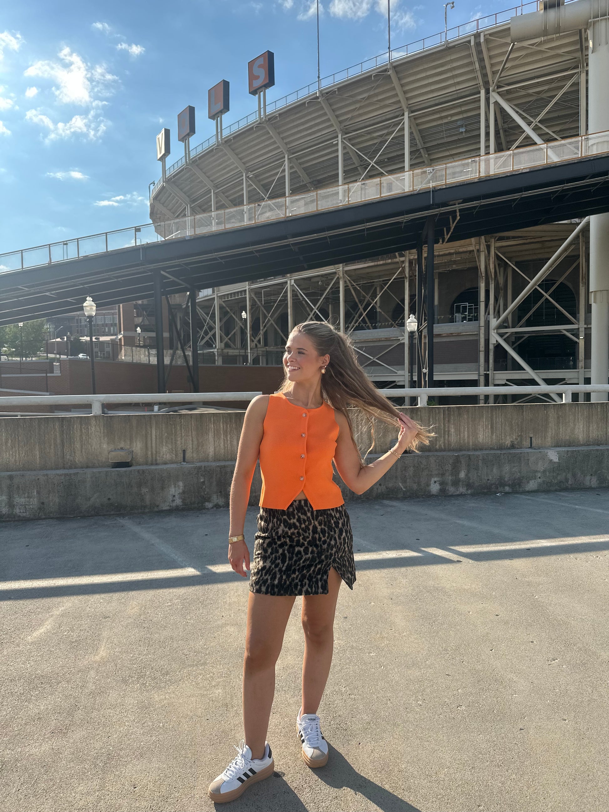This top features the cutest fit with functional buttons and stretchy knit material!